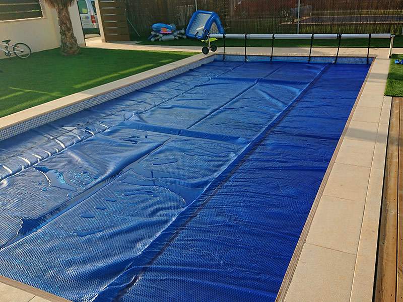 - Las fundas son indicadas para cuando las lonas de burbuja (mantas térmicas) estén varios días recogidas sin darles uso, o para el invierno cuando deban pasar largas temporadas recogidas.