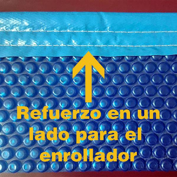 Todas nuestras lonas de burbujas disponen de un refuerzo en uno de los lados por si queremos colocar un rodillo para la recogida de la lona. Dicho refuerzo va incluido en el precio sin coste adicional para usted. La lona es muy fácil de cortar a tijera.